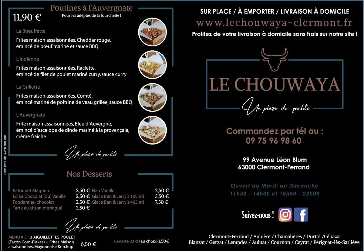 Passing through Clermont-Ferrand on my way back to Paris, I stopped in front of Chouvaya after a Google search. My experience confirms the good rating, and the good comments that I have read. We were made very welcome, and the manager was very accommodating despite our late arrival. My 3 children devoured the fries, I devoured mine, my wife with... and the sandwiches are original. If I really could come up with a constructive criticism, I would have liked to eat the marinated beef with matlou3 bread. Otherwise it's a Max mention!! Comment from my wife: "the marinades were very good and the vegetables were well cooked!"